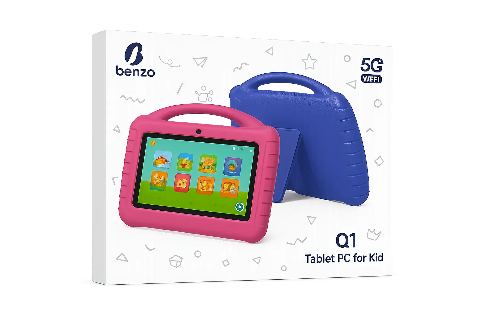 امنح طفلك تجربة فريدة مع جهاز Benzo Q1 اللوحي المصمم خصيصًا للأطفال، بواجهة سهلة وألوان جذابة. يحتوي على تطبيقات تعليمية وألعاب ترفيهية آمنة، مع غطاء حماية متين يحافظ على الجهاز من الصدمات والسقوط. ومع دعم Wi-Fi و 5G، يمكن لطفلك الاستمتاع بالتعلم والمرح في أي وقت وأي مكان.